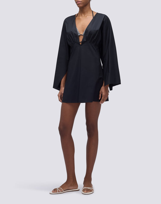 SHORT DRESS WITH OFF-THE-SHOULDERS IN COTTON VOILE