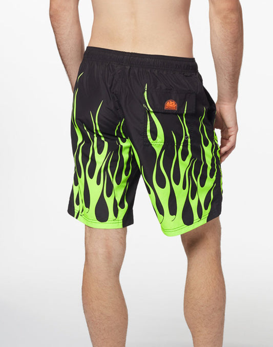 LONG BOARDSHORT WITH ELASTICATED WAIST ACID FLAME PRINT