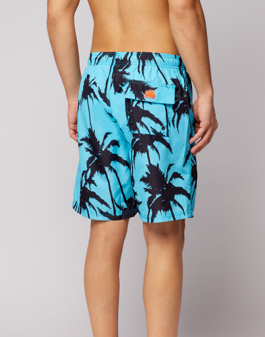 REPREVE® ELASTICATED WAIST SHORT SWIMSHORTS WITH PALM COLLAGE PRINT