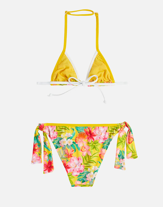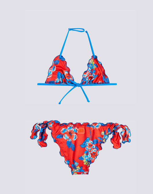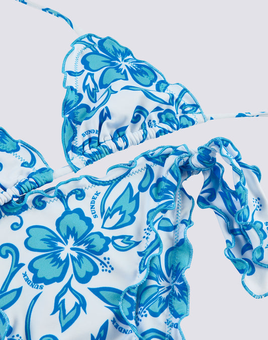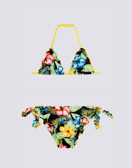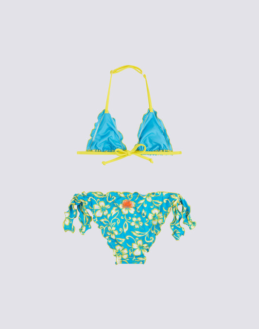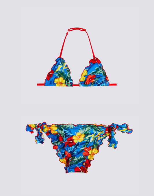 MINI BIKINI WITH RUFFLES AND LACE-UP BRIEFS IN DREAMY HAWAII PRINT