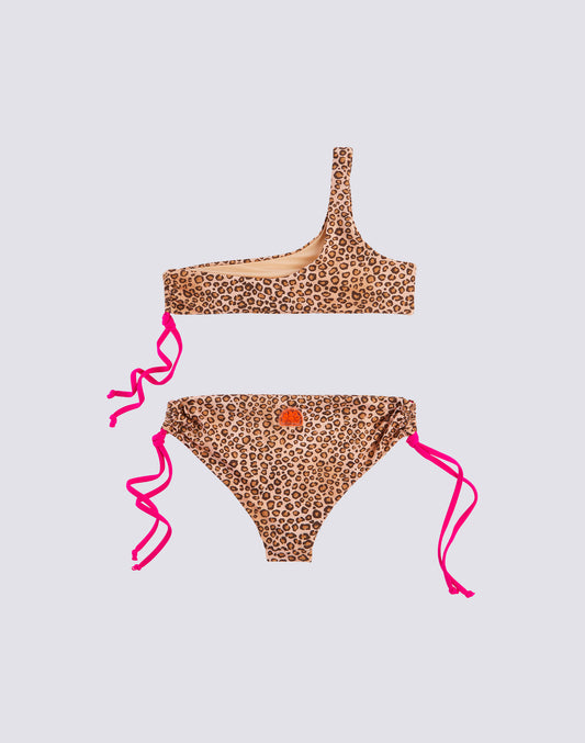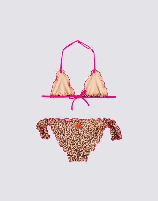 MINI MAGNOLIA BIKINI WITH TRIANGLE TOP AND BOTTOMS WITH LEO PRINT BOWS