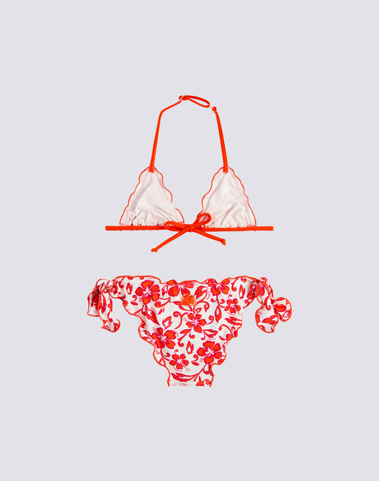 RED FLORAL HIBI PANSY PRINT GIRL BIKINI