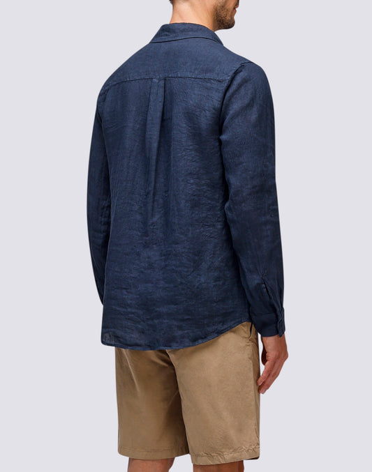 GARMENT DYED LINEN SHIRT WITH MANDARIN COLLAR