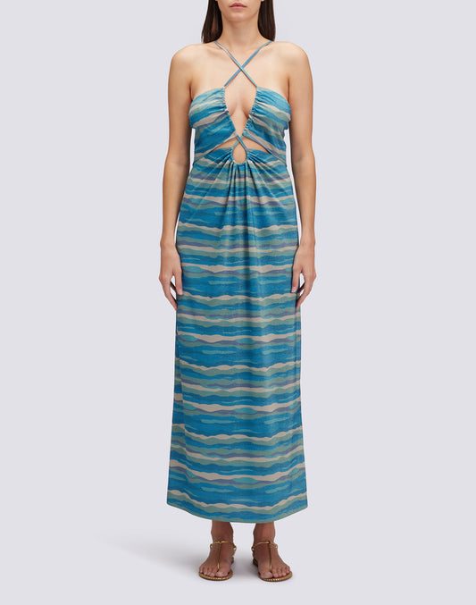 COTTON VOILE LONG DRESS WITH TROPIC SAVANNAH PRINT