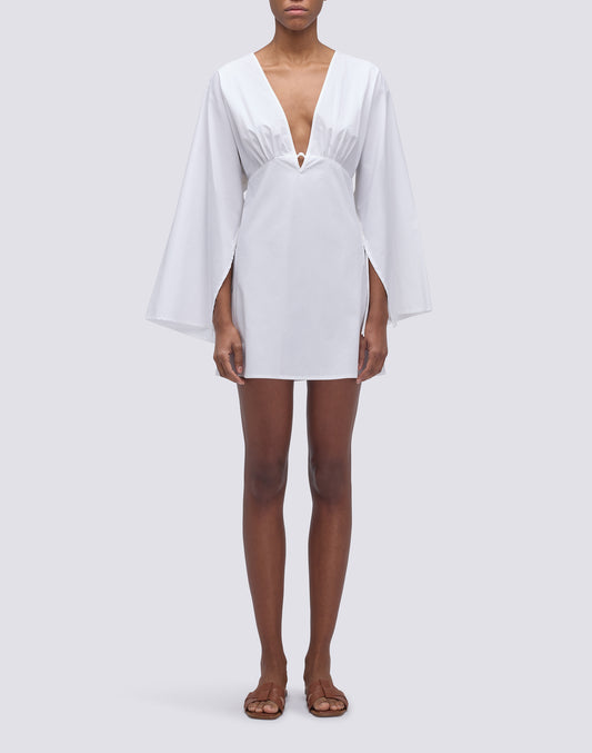 SHORT DRESS WITH OFF-THE-SHOULDERS IN COTTON VOILE