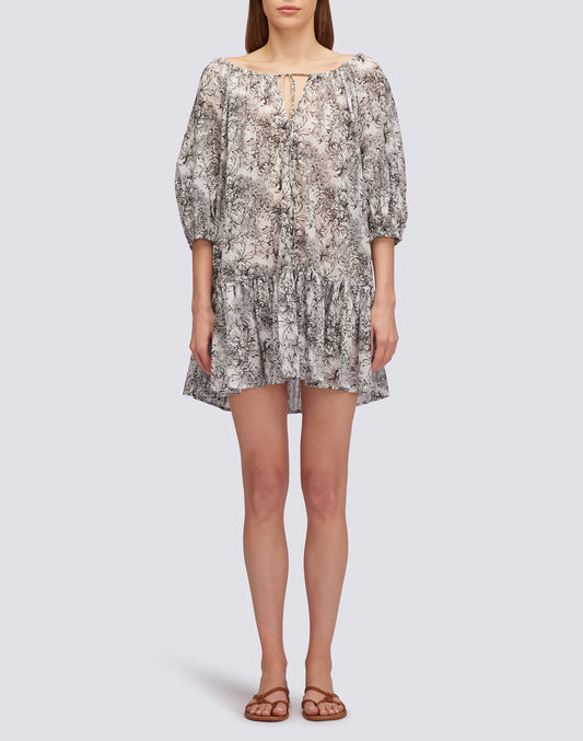 FLEUR DE JOIE PRINT COTTON VOILE SHORT DRESS