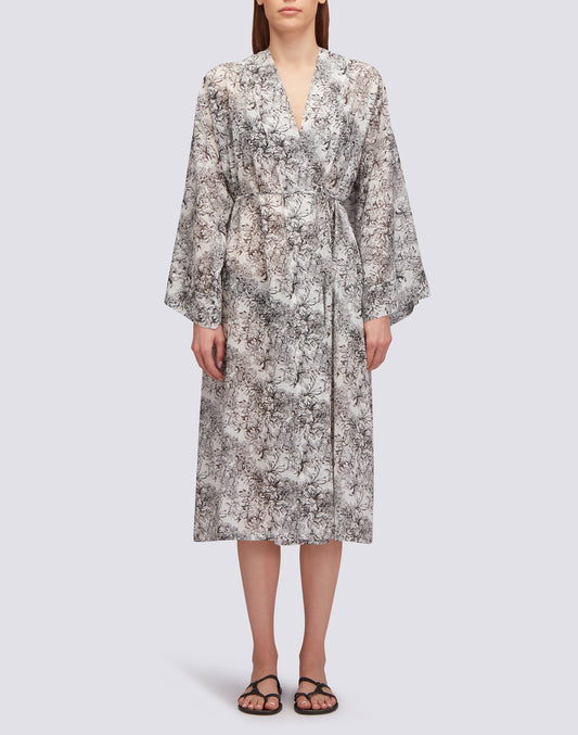 FLEUR DE JOIE PRINT LONG KIMONO DRESS