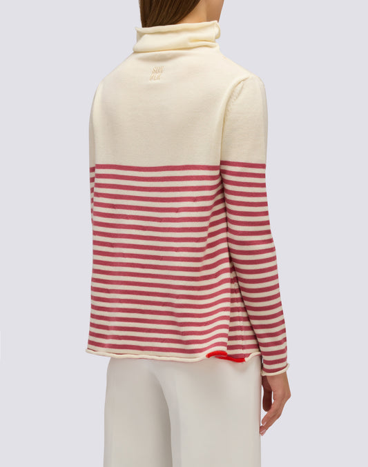 WOMEN'S HIGH NECK SWEATER WITH STRIPED DETAIL