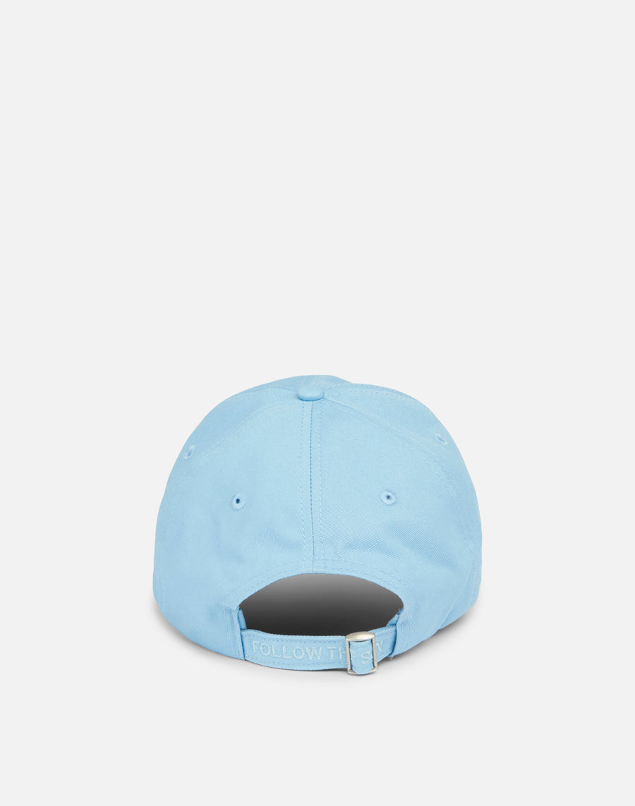 Cierre trasero con correa ajustable y leyenda FOLLOW THE SUN.