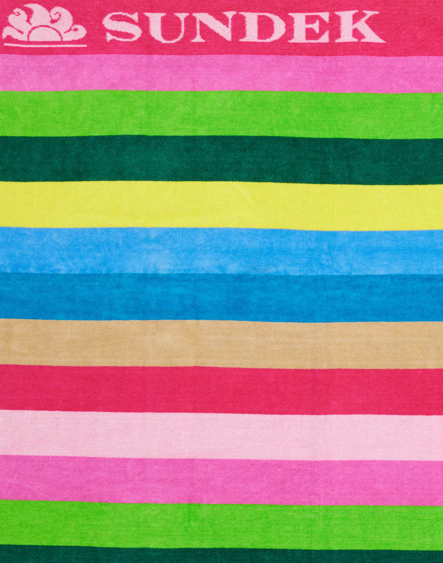 Ilumina tu verano con esta toalla de playa de algodón jacquard. De tonos vivos y frescos, con rayas multicolores, es perfecto para llevar contigo a la playa oa la piscina. Dimensiones: 100x180 - 440 g.