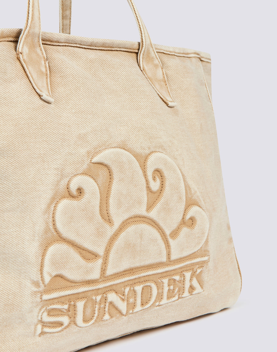 Bolso tote regular de lona de algodón teñida en prenda, con logotipo grabado en la parte delantera y acabados dorados. Espacioso y moderno, es el accesorio imprescindible para lucir con tus looks de primavera-verano.