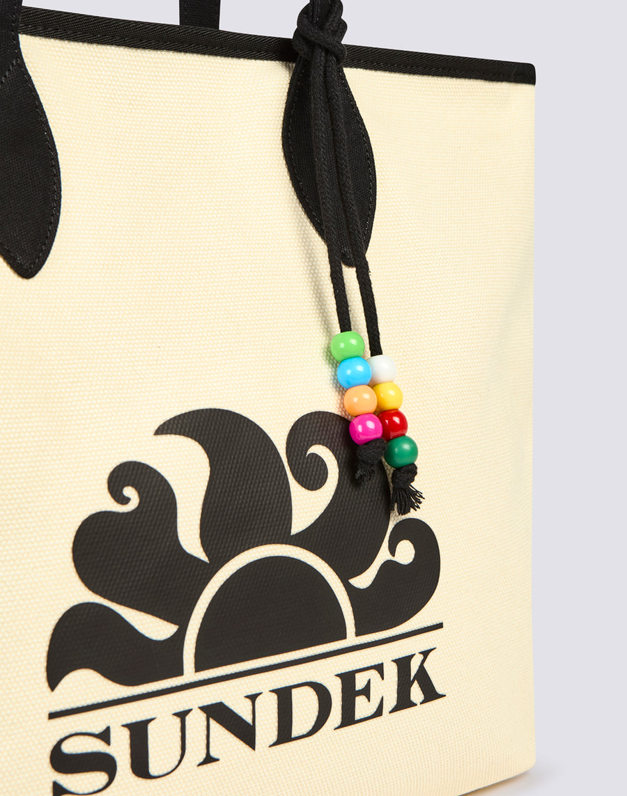 Bolso tote regular con asas para el hombro y adorno con cuentas de colores del arcoíris. En lona de algodón, es un modelo esencial para tus conjuntos diarios.