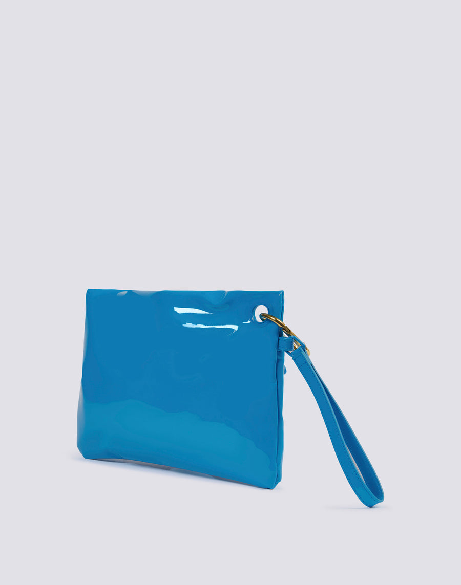 Waterproof clutch bag with snap hook and hand loop, to carry with you how and where you want. A versatile clutch bag that you can use on its own or attach to bags and backpacks thanks to the practical snap hook. The shiny effect and the front stitching give the clutch bag an indispensable touch of character. It is also waterproof to protect your most important items.