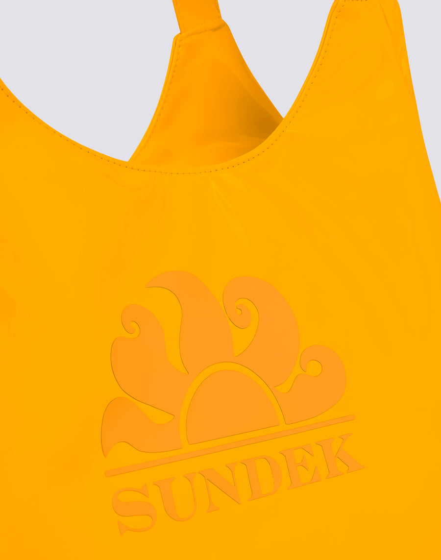 Amplia y espaciosa, es una bolsa de playa con carácter, perfecta también para otras ocasiones informales y para acompañarte al gimnasio.