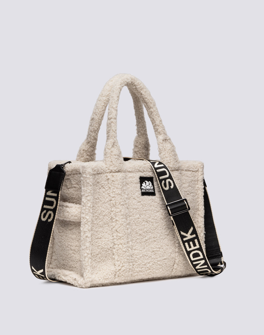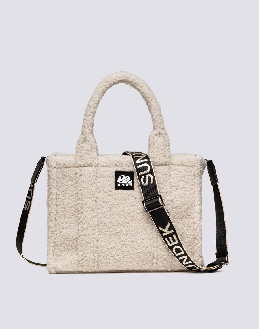 Un modelo polivalente y a la última, listo para combinar con estilo con tus conjuntos de temporada. ¿Bolso de mano o bandolera? Tú decides cómo llevar este shopper práctico y a la última gracias a la bandolera con logotipo La superficie afelpada aportará carácter a tus looks. Forma de squarata, doble manejo de mano y correa para el hombro para llevar la bolsa de hombro o el cuerpo transversal.