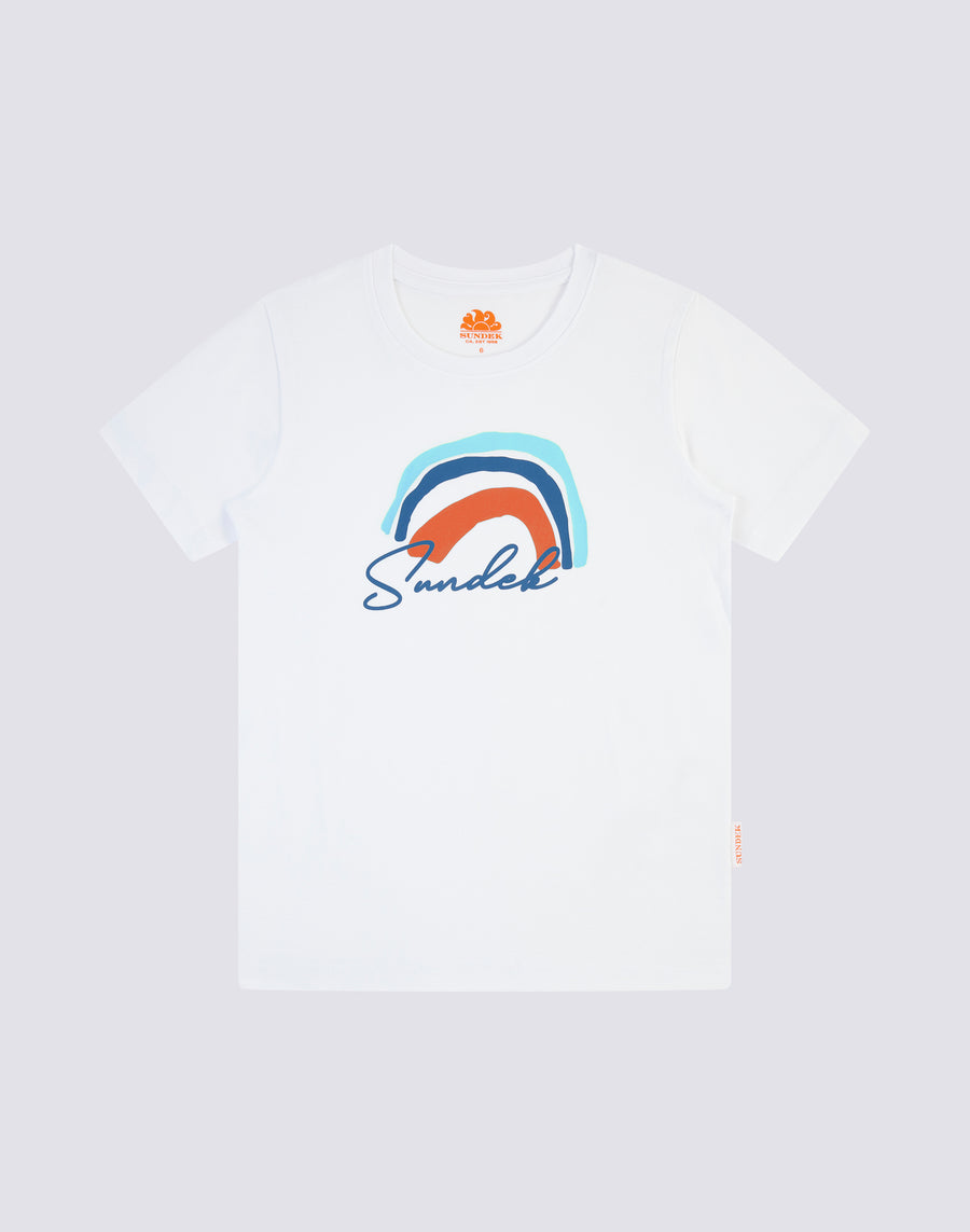 Camiseta infantil con estampado frontal Kiddodle Rainbow. Cuello redondo y corte regular.