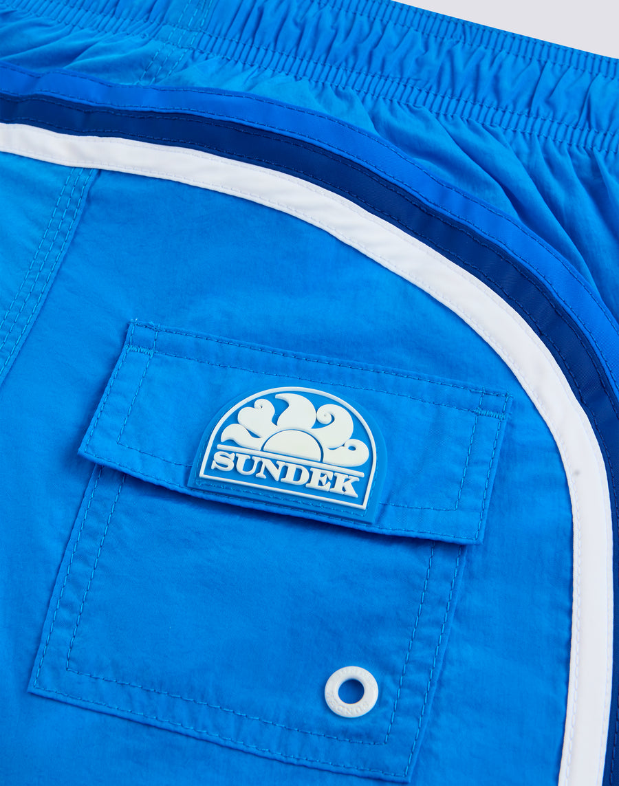 Color intenso y tejido hipercómodo de secado rápido para estos pantalones cortos de baño para niño. Un modelo que acompañará a tu hijo en sus mil actividades durante las vacaciones, perfecto para moverse y jugar con total libertad. Está confeccionado con nuestro tejido histórico de nylon tafetán y construido con costuras de tres agujas que lo hacen resistente al paso del tiempo. Para meter en la maleta, año tras año.