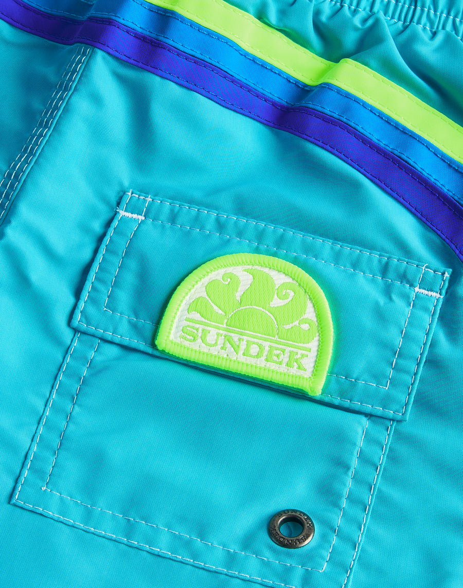 Color intenso y tejido ultracómodo y de secado rápido para este short de playa para niño. Un modelo que acompañará a tu hijo en sus múltiples actividades en vacaciones, perfecto para moverse y jugar libremente. Está confeccionado con nuestra tela de tafetán de nailon tradicional y está construido con costuras de tres agujas que lo hacen duradero con el tiempo. Para empacar, año tras año.