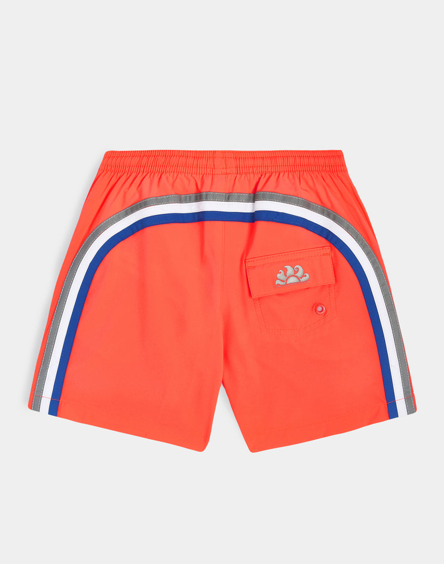 Color intenso y tejido ultracómodo y de secado rápido para este bañador corto para niño. Un modelo que acompañará a tu hijo en sus múltiples actividades durante las vacaciones, perfecto para moverse y jugar con total libertad. Ligero, resistente, de secado rápido y confeccionado en tejido 4 Way Stretch. Tiene nuestras clásicas costuras a tres agujas para mayor durabilidad y nuestro icónico arco iris en la espalda.