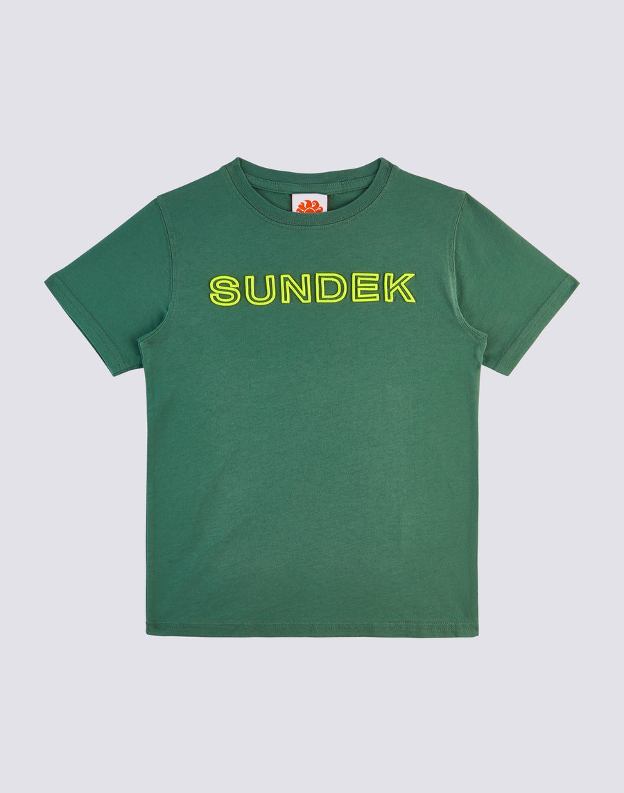 Esta camiseta de algodón de manga corta lleva bordado el logotipo de SUNDEK que la hace única. Perfecta para niños, es ligera y duradera e ideal para cualquier actividad al aire libre.