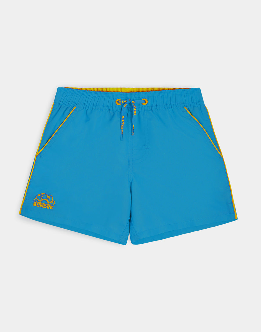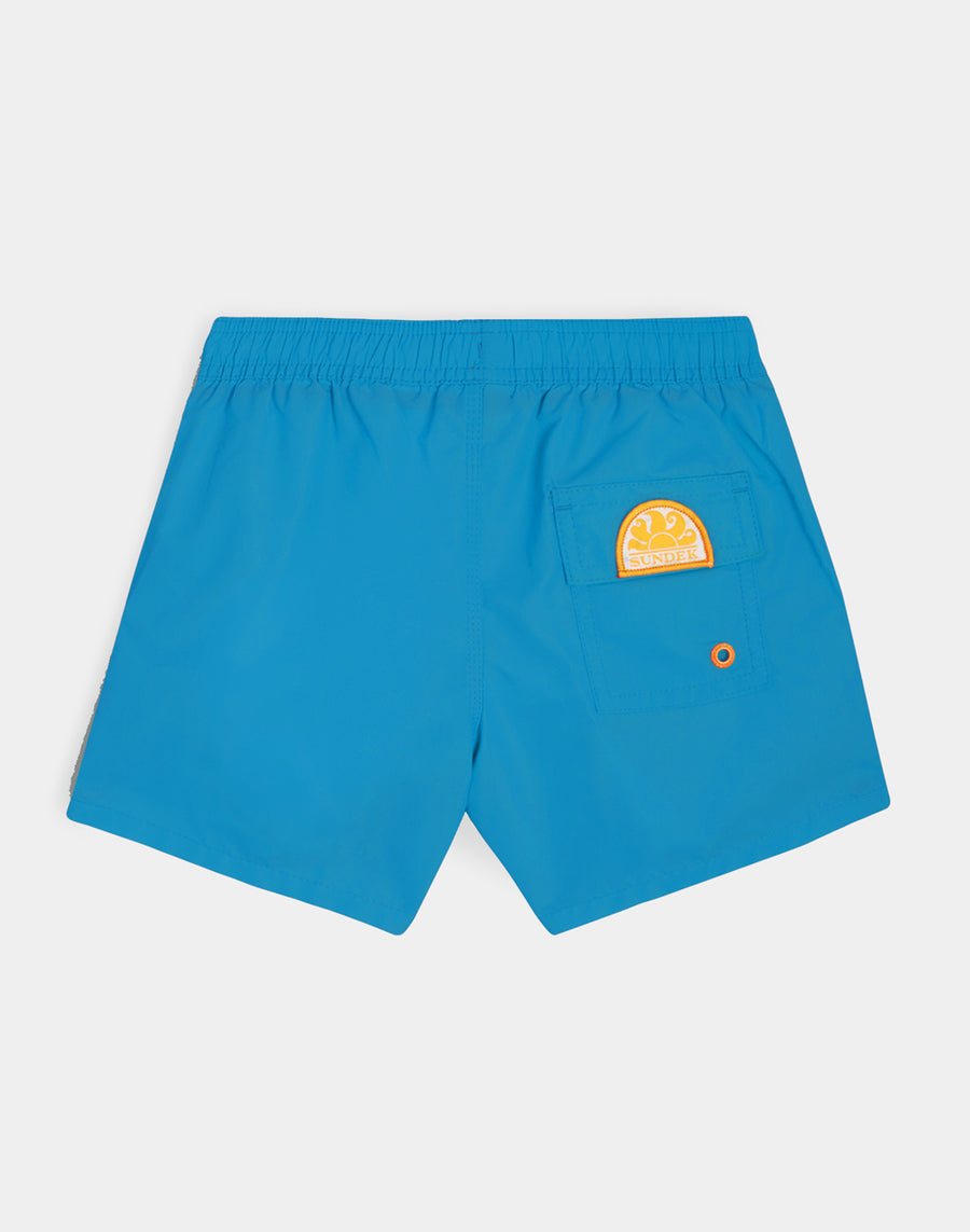 Un modelo que acompañará a tu hijo en sus mil actividades en vacaciones, perfecto para moverse y jugar con total libertad. Está confeccionado con nuestra tela de tafetán de nailon tradicional y está construido con costuras de tres agujas que lo hacen duradero con el tiempo. Para empacar, año tras año.