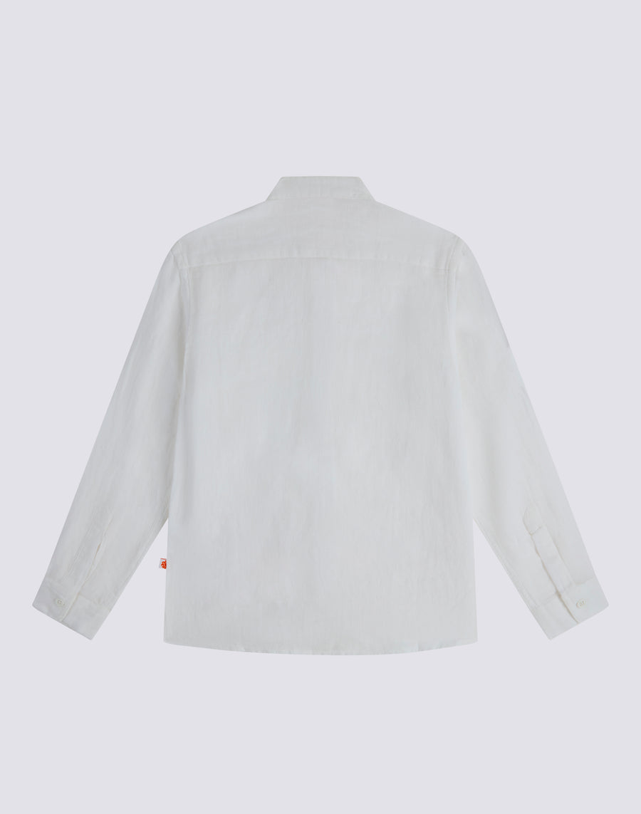 Camisa infantil teñida en lino con cuello mao. Una prenda fresca y versátil, imprescindible en el armario de verano.