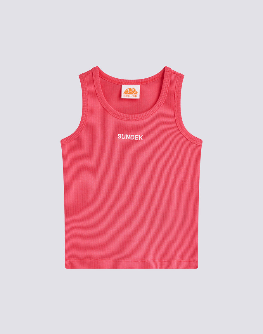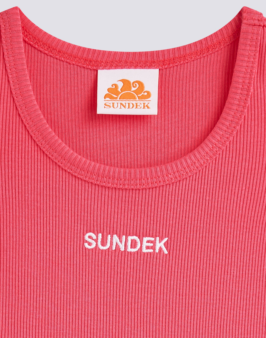 Camiseta de tirantes de canalé con el logotipo de Sundek bordado en la parte delantera. Modelo de niña idéntico al de adulto, ¡para crear un look matchy matchy con mamá!