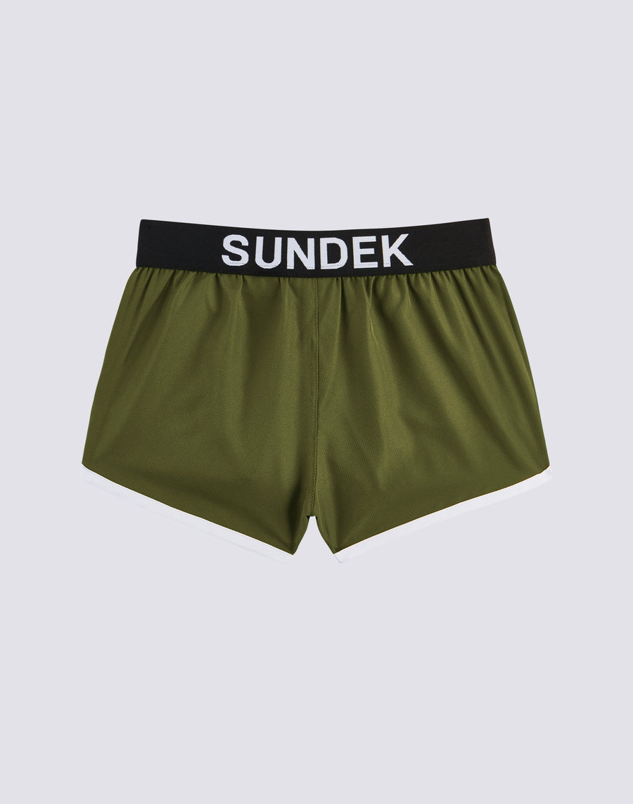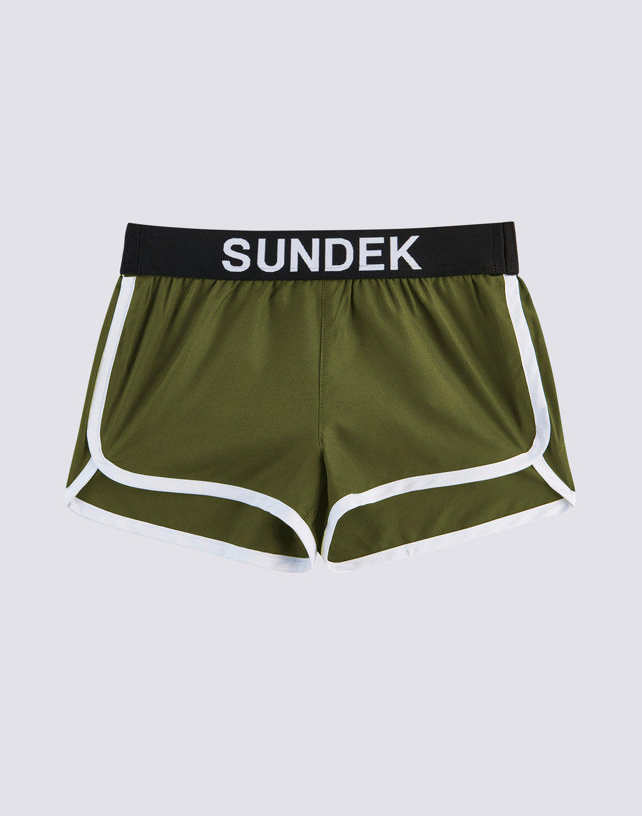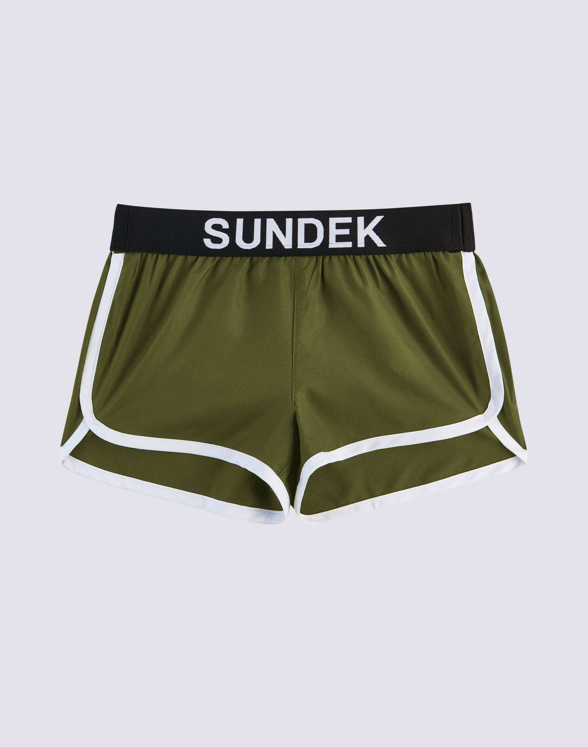 Unos shorts ligeros con logotipo Sundek, perfectos para llevar sobre el bañador. Fáciles de poner, con un tejido ligero y cómodo, acompañarán a tu hija de la playa a los juegos de verano. Ajuste regular. Longitud 16 cm (talla 6) medida en el lateral exterior.