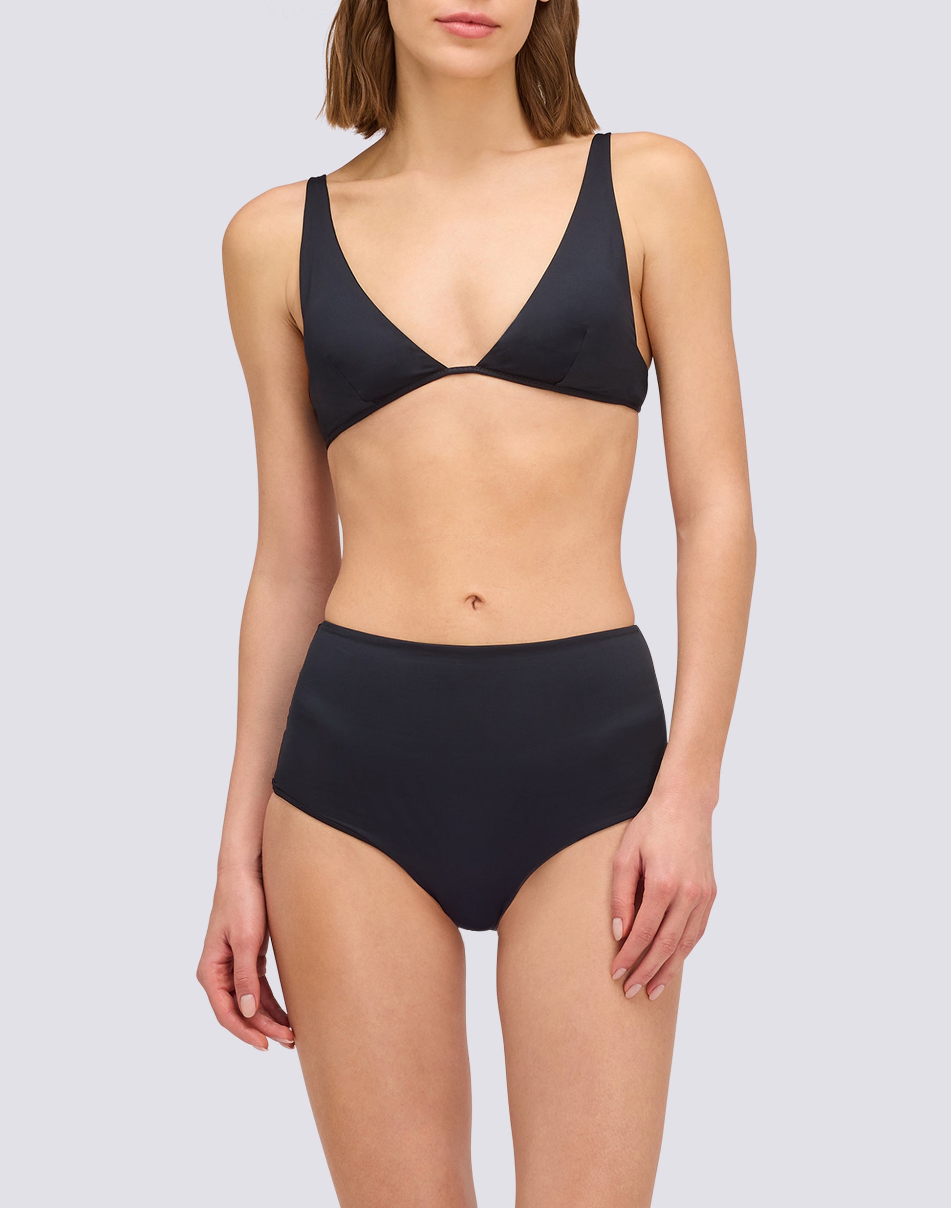 El bikini de talle alto es un modelo que destaca por su banda situada por encima del ombligo, que a menudo llega hasta la cintura o incluso más arriba. Es un diseño que recuerda el estilo retro y ofrece un ajuste especial. Ofrece una mayor cobertura en la zona abdominal que otros modelos. La cintura alta tiende a enfatizar la cintura, creando una silueta de reloj de arena, sobre todo si se combina con un top que deja al descubierto la parte superior del abdomen. Puede tener un aspecto marcadamente vintage, pero también existen versiones modernas con cortes más minimalistas. La banda alta puede ofrecer un ligero efecto contenedor en la zona abdominal, moldeando la silueta. La cobertura de los glúteos puede variar según el modelo, desde total hasta más escotada o «cheeky». Para llevarlo correctamente, es fundamental que la banda alta no apriete demasiado y que el slip se adapte bien a las formas sin crear pliegues.