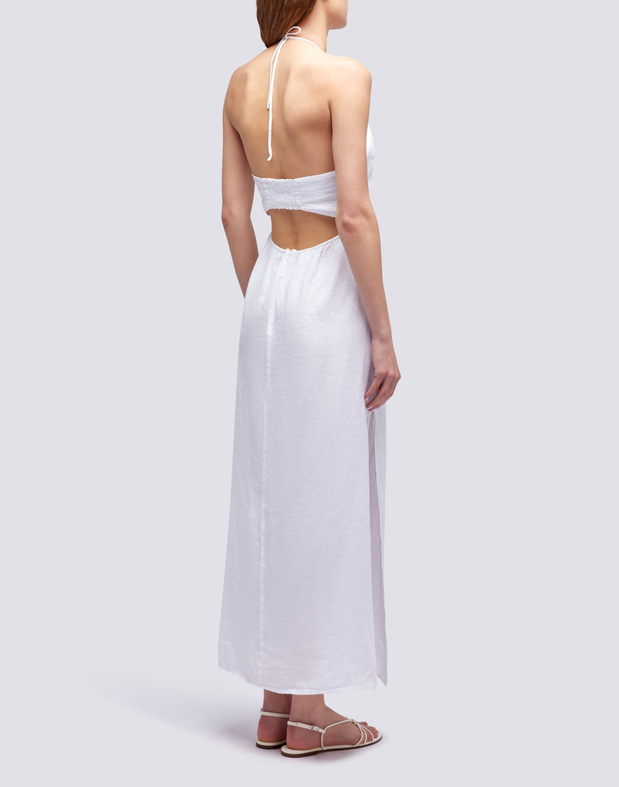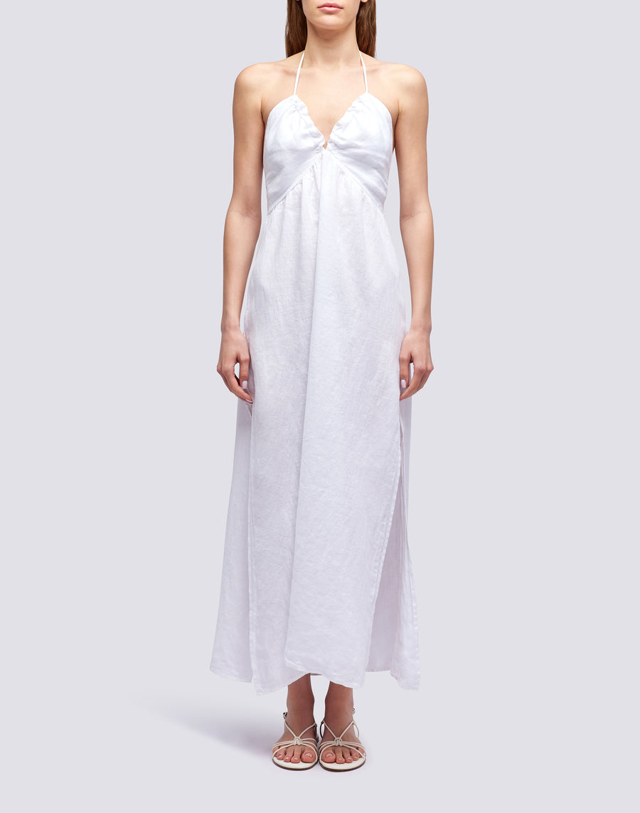 Si buscas un vestido largo fresco y ligero para el verano, ¡este es el tuyo! Confeccionado en lino de alta calidad, tiene un profundo escote en V que le da un toque de elegancia y feminidad. Sencillo y fácil de llevar, perfecto para cualquier ocasión.