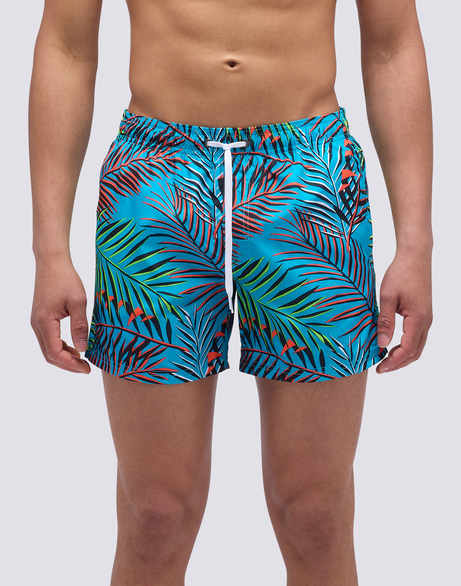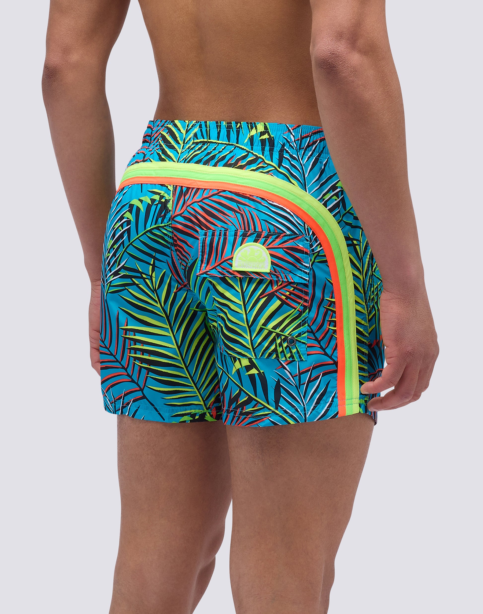 BAÑADOR CORTO DE CINTURA ELÁSTICA CON ESTAMPADO DE HOJAS NEÓN