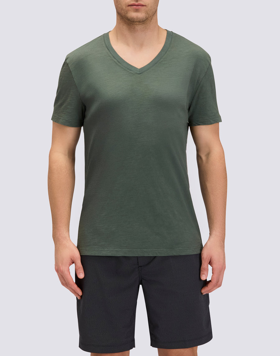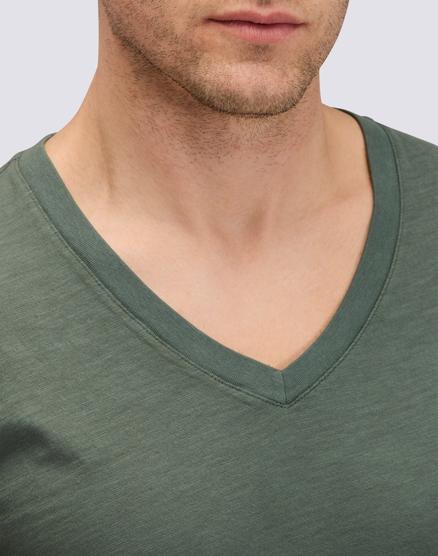 Camiseta de manga corta para hombre, teñida en pieza, con cuello en V. Corte regular para una comodidad óptima.