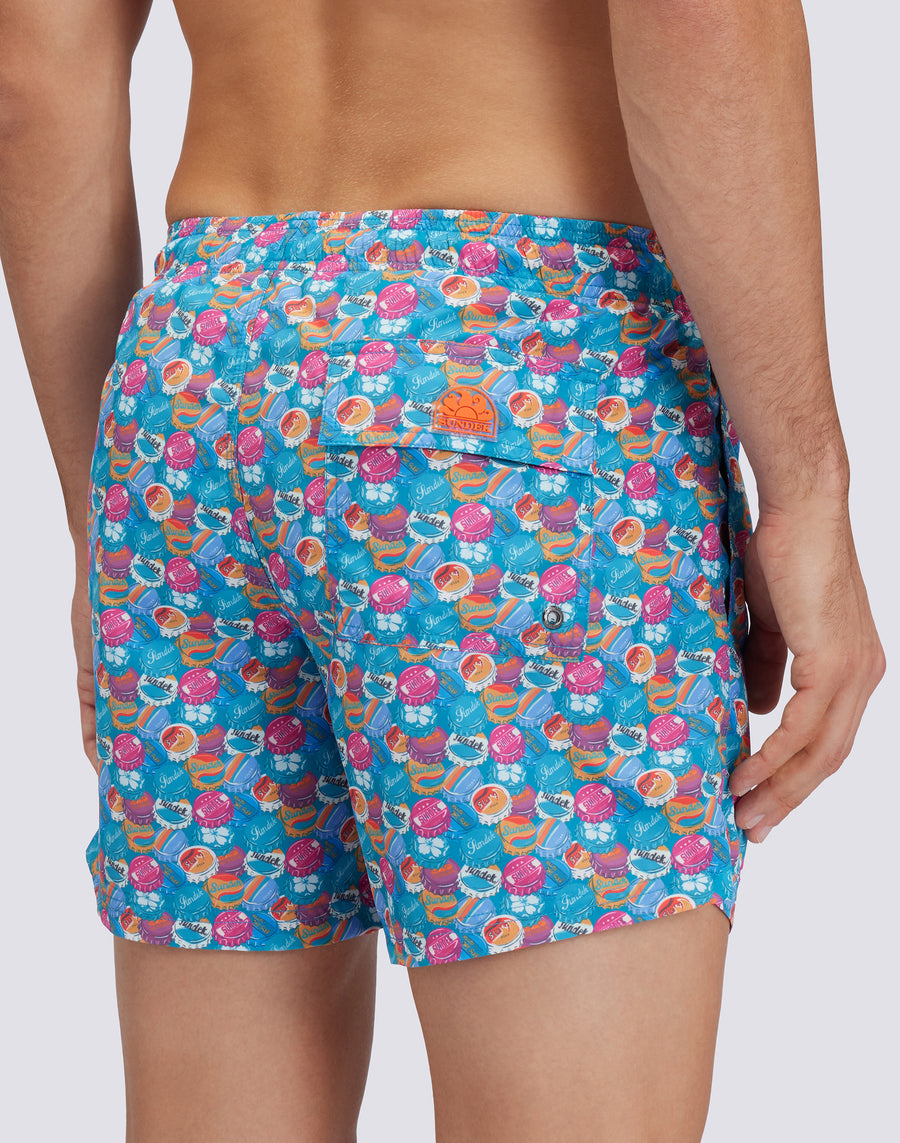 TRAJE DE BAÑO CORTO CON CINTURA ELÁSTICA Y ESTAMPADO SUNCAP DE POLIÉSTER RECICLADO