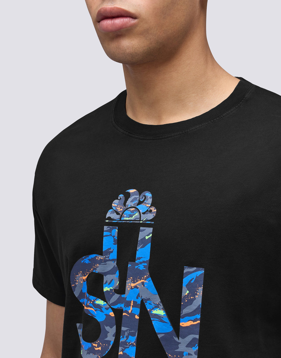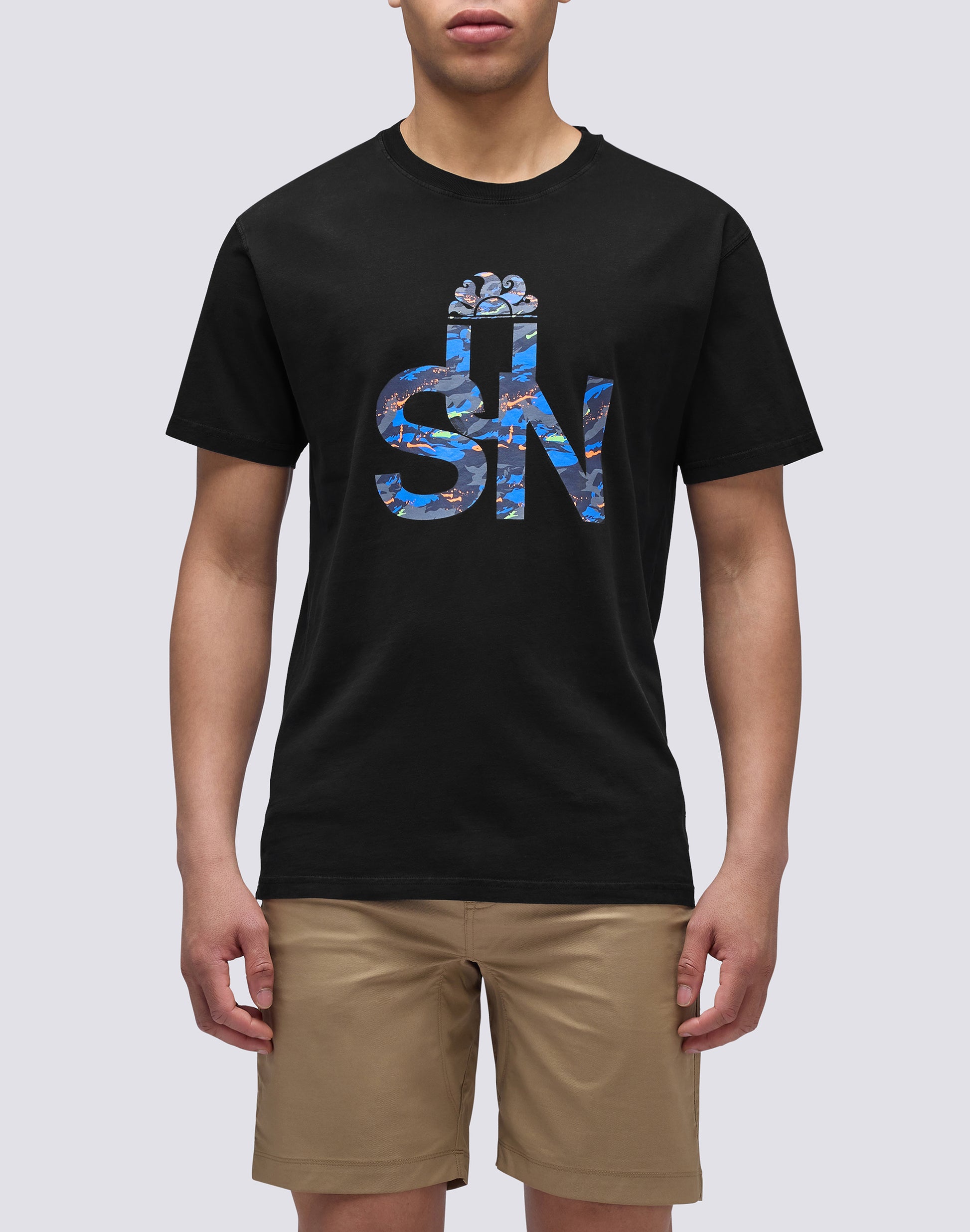 Dale un toque a tu look con nuestra camiseta de media manga para hombre. Confeccionada en suave algodón y adornada con letras de camuflaje SUNDEK, esta camiseta es perfecta para conjuntos informales pero a la moda.