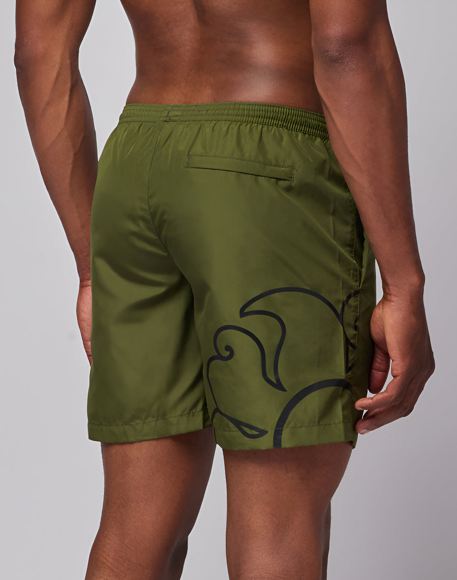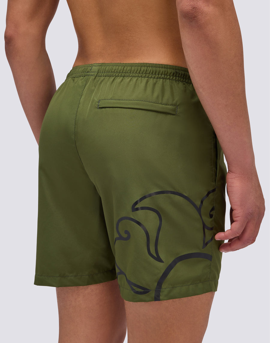 Bañador corto para hombre de longitud media y cintura elástica. Equipado con cordón de ajuste y bolsillo trasero con cremallera. Se seca rápidamente gracias al poliéster ligero con el que está confeccionado. Longitud exterior de la pierna 16"/41 cm (en ta