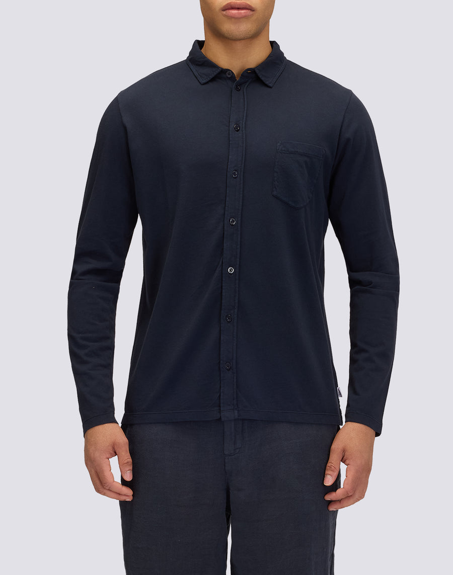 Camiseta de hombre de manga larga de punto de algodón teñido en prenda. Corte regular.