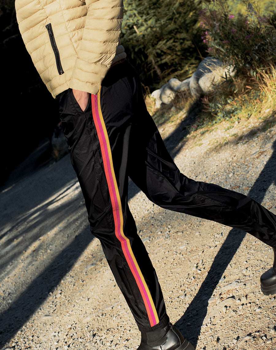 Un artículo imprescindible para un look casual con clase. Confeccionados en un tejido cómodo, estos pantalones largos lucen el icónico arcoíris en la espalda, un detalle que aporta un toque de elegancia a tu look. El ajuste regular los hace versátiles y adecuados para cualquier ocasión. Tu armario no puede prescindir de él.