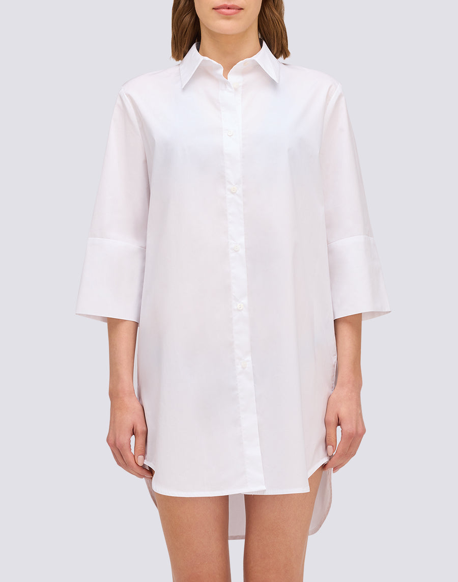 La camisa corta de popelín de algodón es la prenda oversize que lo resuelve todo: tejido fresco y transpirable, largo práctico, mangas largas para cubrir. Para quienes buscan un estilo informal y relajado. Corte amplio y relajado que nunca aprieta. El corte oversize es el que funciona para todas: cómodo, informal, fácil de llevar. Libertad de movimiento absoluta.