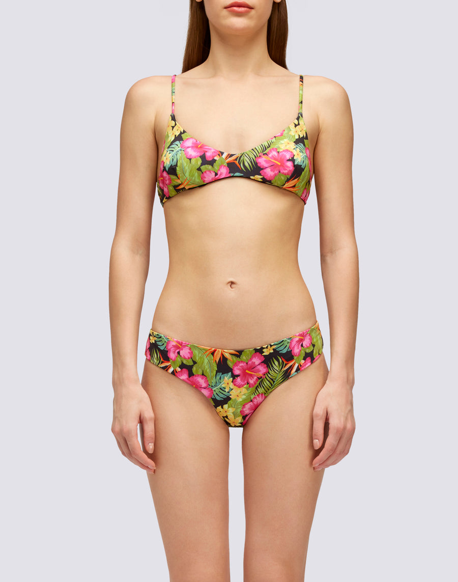 The Lauderdale bralette top in Tropicana print is current and comfortable thanks to its fit with adjustments. It will make you feel comfortable all day. To be completed with its matching briefs.