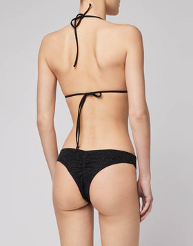 Completa el sujetador a juego con esta braguita culotte de lúrex con frunce femenino en la parte trasera. Lucirás un bikini de mujer elegante y perfecto bajo el sol.