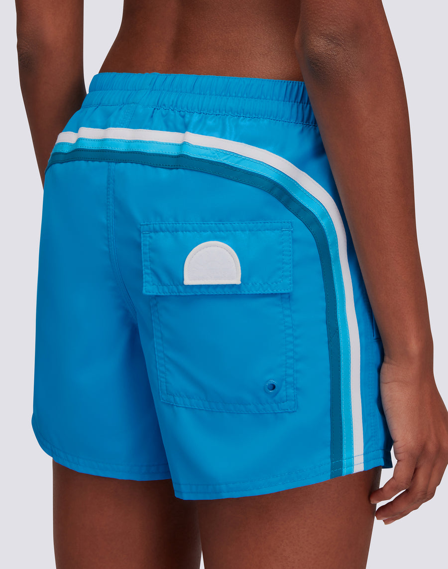 Con el boardshort Coast para mujer podrás disfrutar de un ajuste perfecto gracias a la cintura elástica, sin renunciar al estilo. El icónico arco iris de Sundek en la espalda lo convierte en una pieza imprescindible de tu ropa de playa.