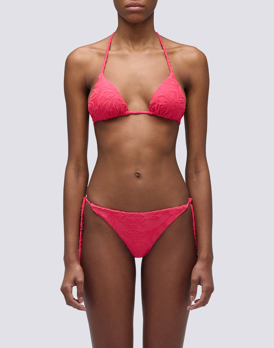 Braguita de rizo jacquard Monroe con lazos ajustables y motivo Hibiscus. Corte entallado. Combínalo con el top a juego, que se vende por separado.