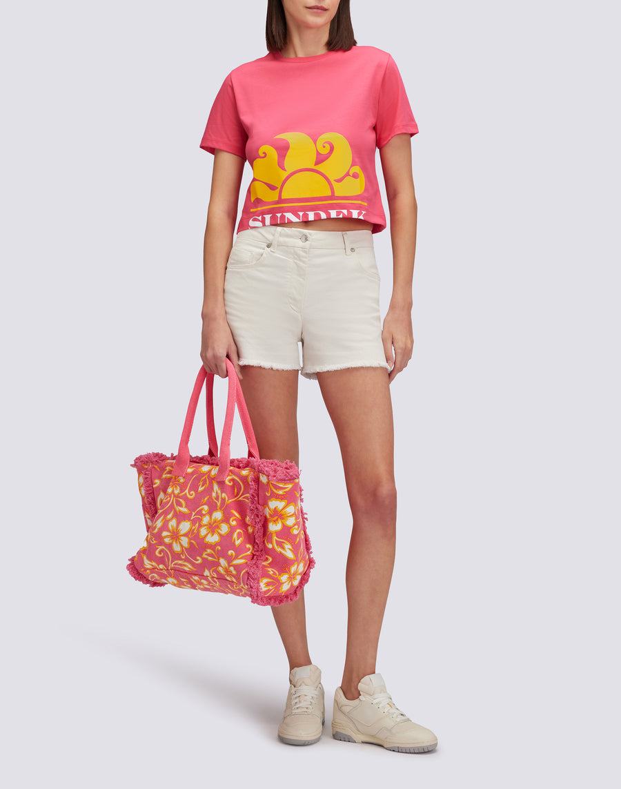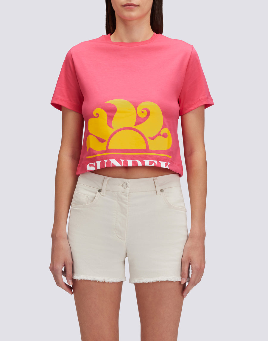 Camiseta crop de mujer para llevar sobre vaqueros o faldas. Una prenda imprescindible para tus conjuntos de primavera-verano.