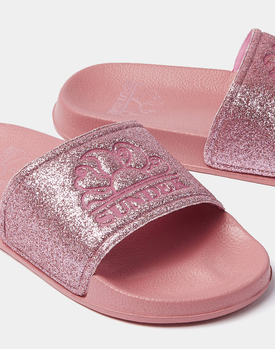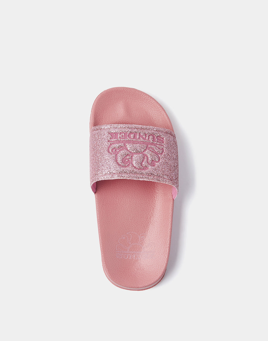 Tongs de plage pour fille, super confortables, parfaites pour la plage et à porter tout l'été en de nombreuses occasions, avec le petit plus apporté par l'effet paillettes de la bande.