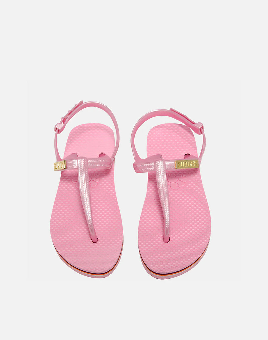 Tongs pour filles, parfaites pour une préparation ultrarapide pour la plage, complétées par le détail multicolore inséré dans la semelle et la fermeture ajustable. Un symbole indémodable de l'été. Complétées par d'amusants détails tricolores insérés dans
