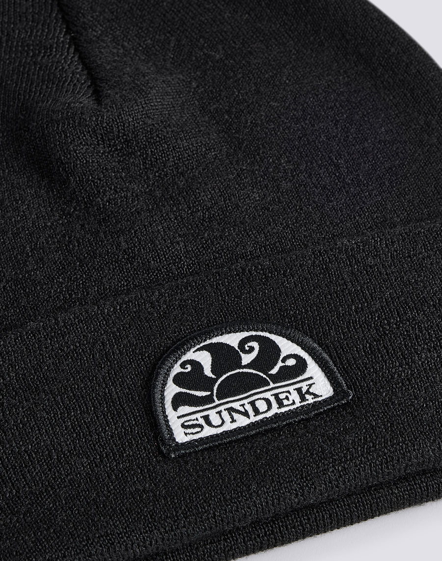 Bonnet avec patch en laine douce et soie.