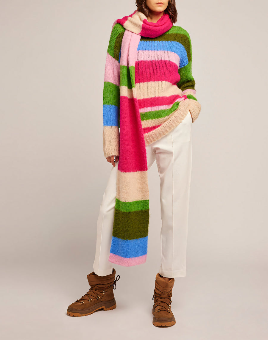 Une écharpe multicolore polyvalente et confortable à combiner facilement avec tous tes vêtements d'extérieur.