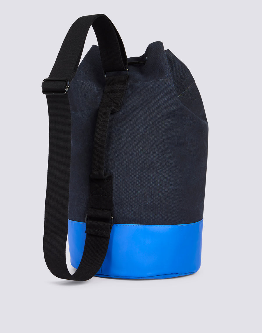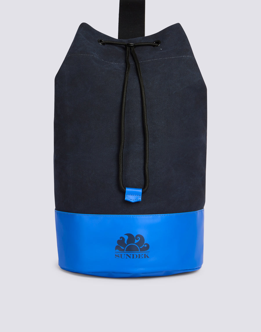 Sac à bandoulière en coton avec fermeture à cordon, blocs de couleur contrastante et logo imprimé sur le devant. Un sac technique, spacieux et essentiel.