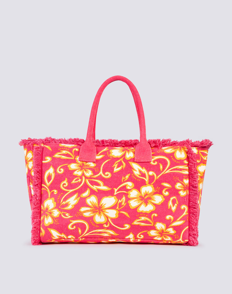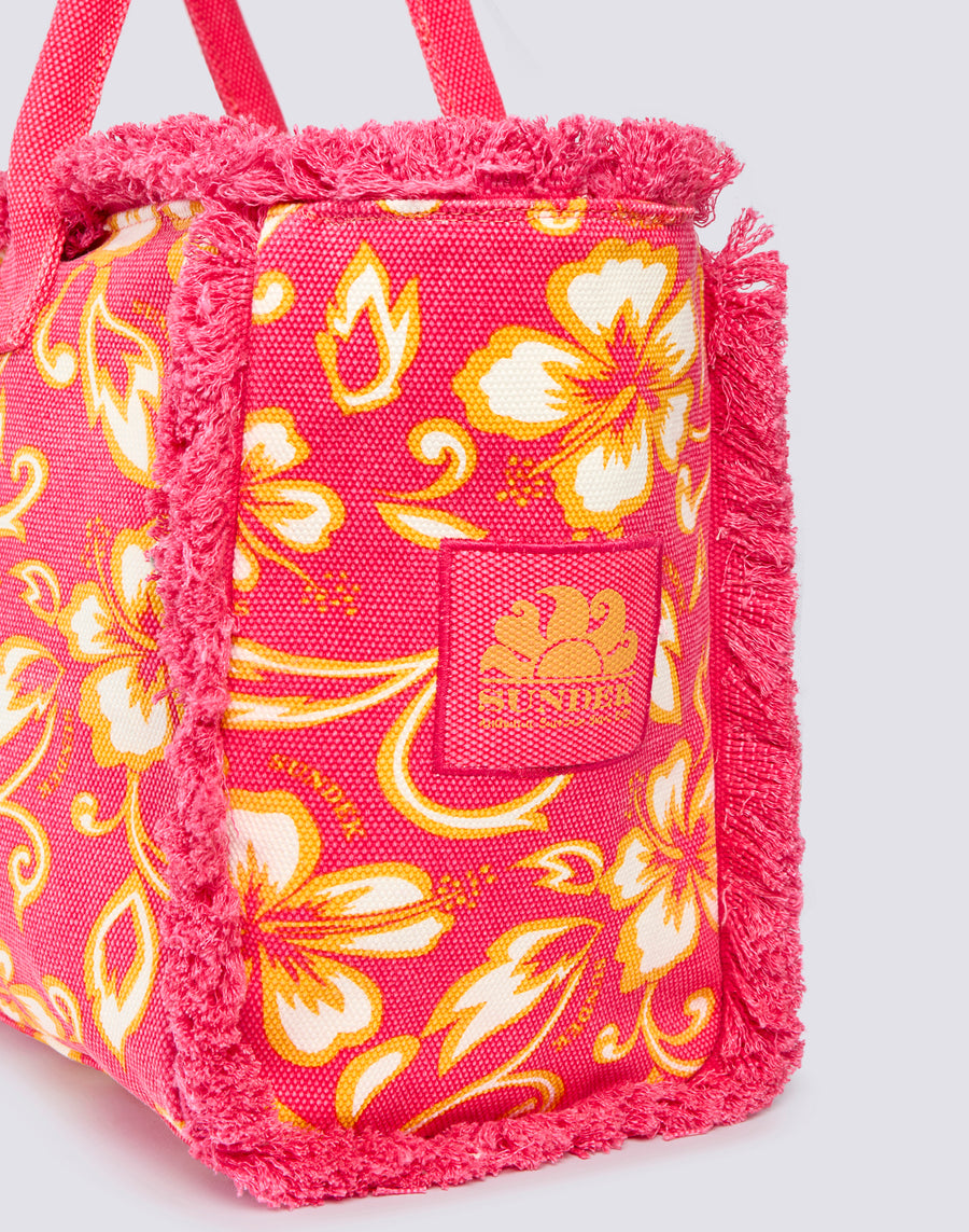 Sac cabas effet délavé, format standard, avec imprimé SK23, franges ton sur ton, fermeture zippée et finitions dorées. Coloré, audacieux, spacieux, parfait comme sac à provisions ou sac de plage.