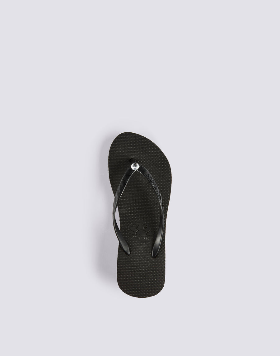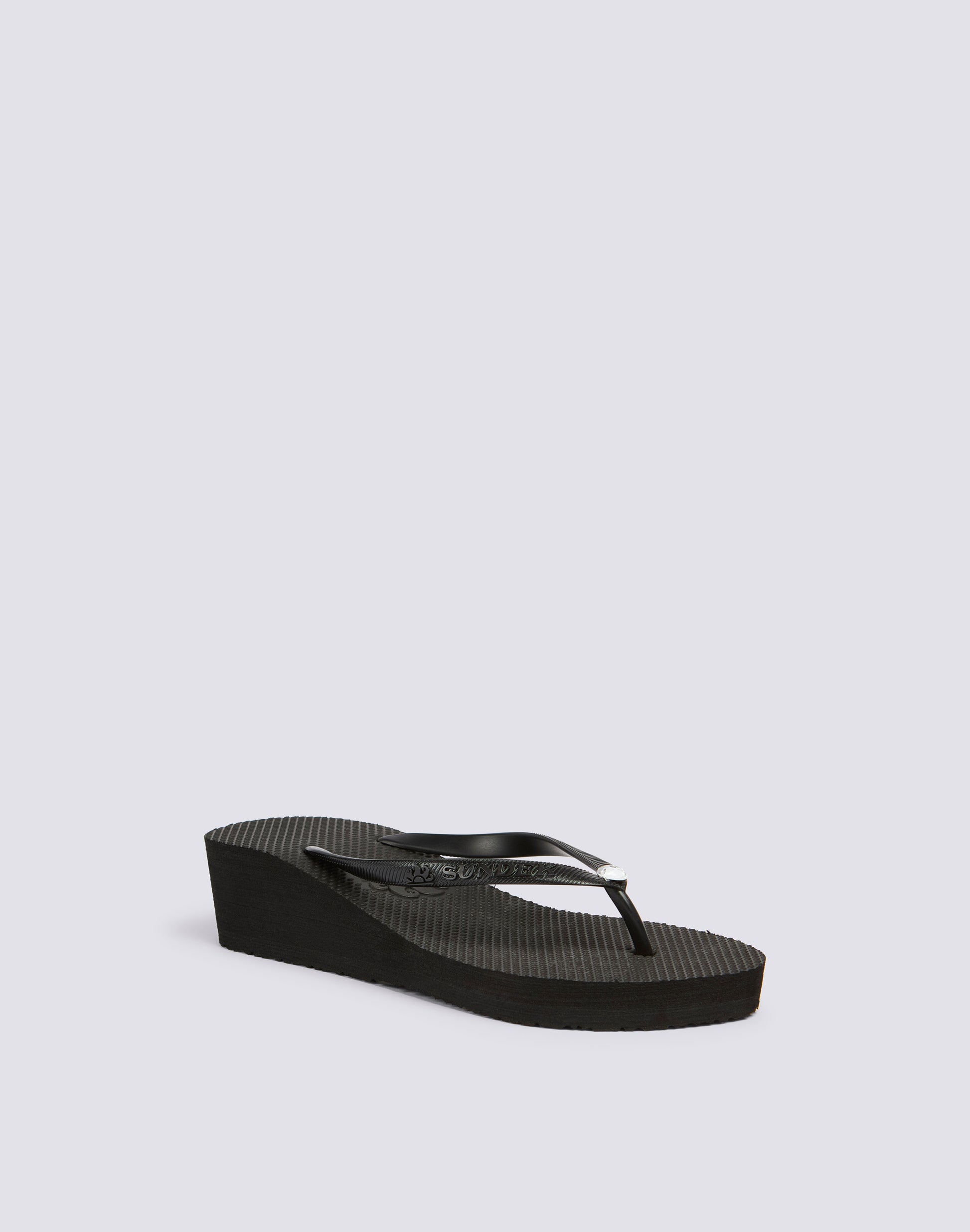 Tongs Toluca avec talon compensé. Elégant et parfait pour donner de l'élan grâce à la cale de 4 cm. Pétillant et glamour avec le swarosky appliqué sur la partie caoutchoutée supérieure.
